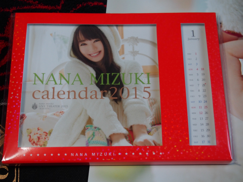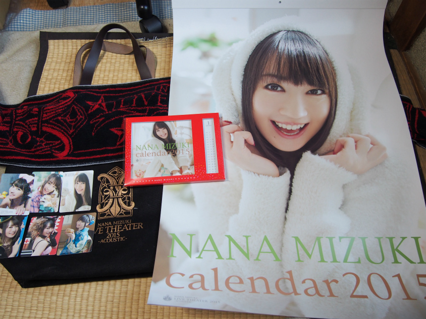 トートバッグ、マフラータオル、カレンダー、卓上カレンダー、写真に写ってませんが奈々ちゃんが初日のアンコールで来ていた赤のTシャツを買いました。