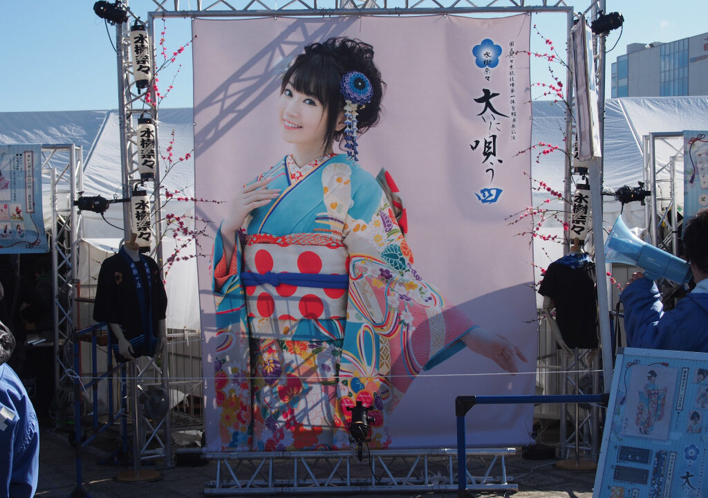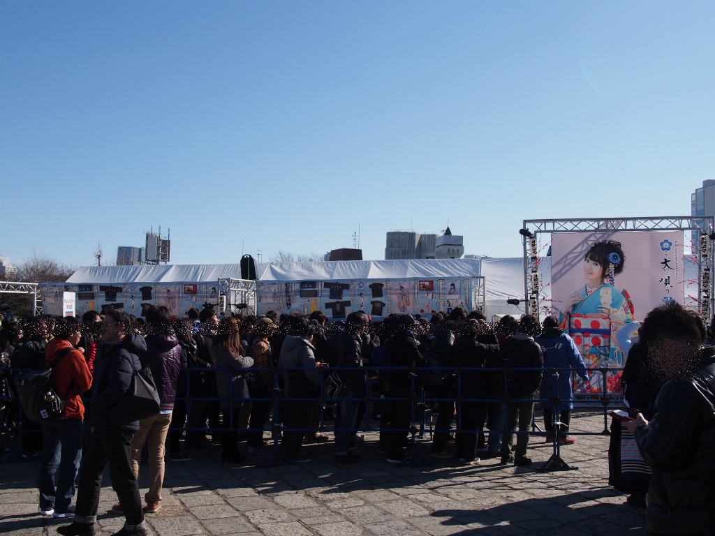 後今回は物販会場センターに有る大きな奈々ちゃんの横断幕の様なやつを撮影するための列が物販列とは別にありました。そこに並んでタイミングを見計らって写真を撮ると結構いい感じに人の映り込みの無い写真が撮れました。