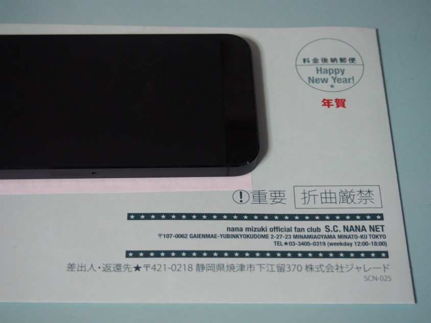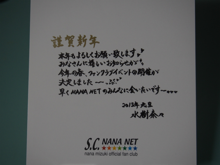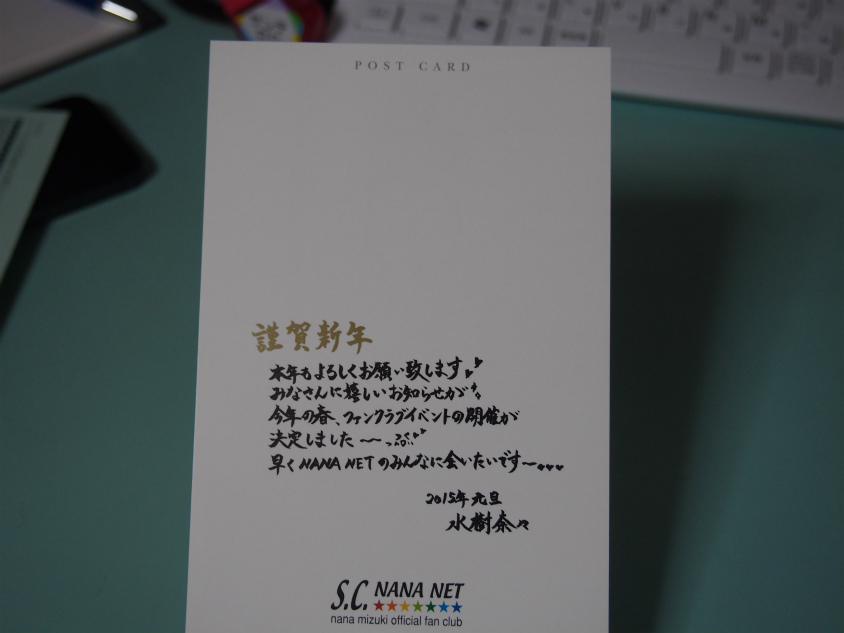 元旦の午前中に奈々ちゃんのファンクラブから年賀と書かれた封筒が届きました。