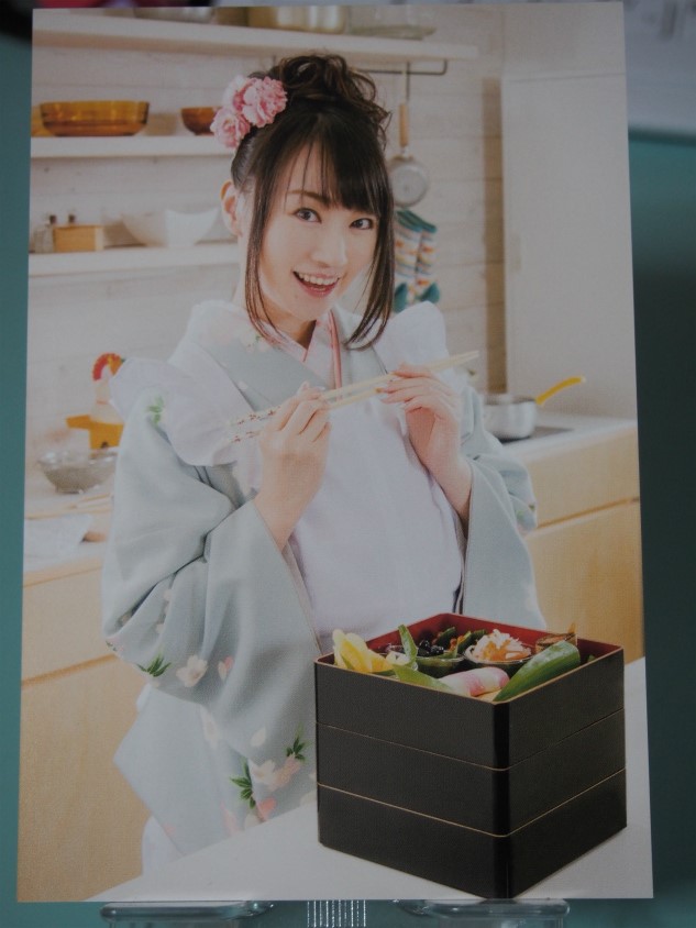 封筒を開けてみると着物でおせちを作ってる新妻風の奈々ちゃんの写真になってます。