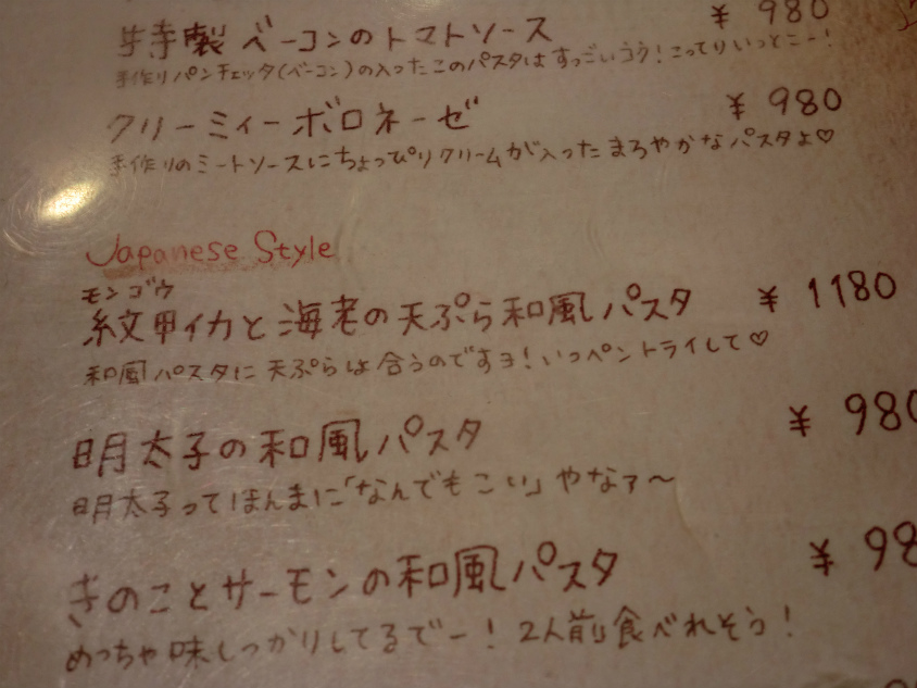 パスタ以外にもメニューがいっぱいありましたがとりあえず今回は