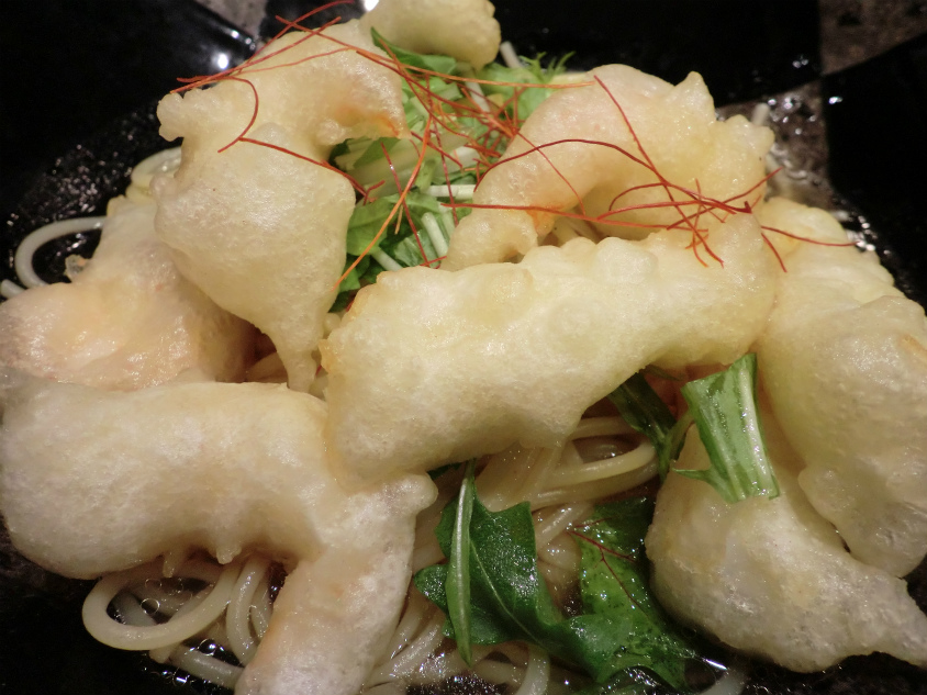 紋甲イカと海老の天ぷら和風パスタ(1180円)を注文。