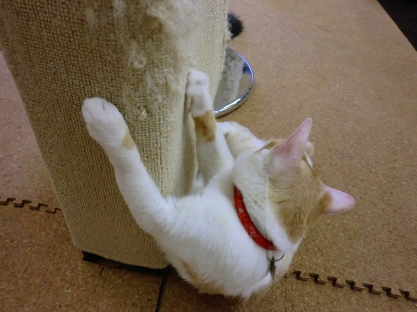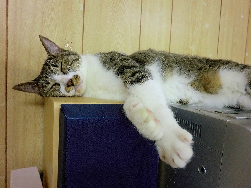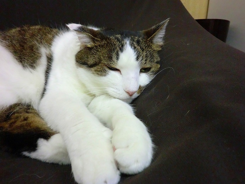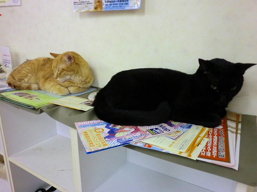 チラシを置いている台の上で寝ていたりといろんな所で寝ています。