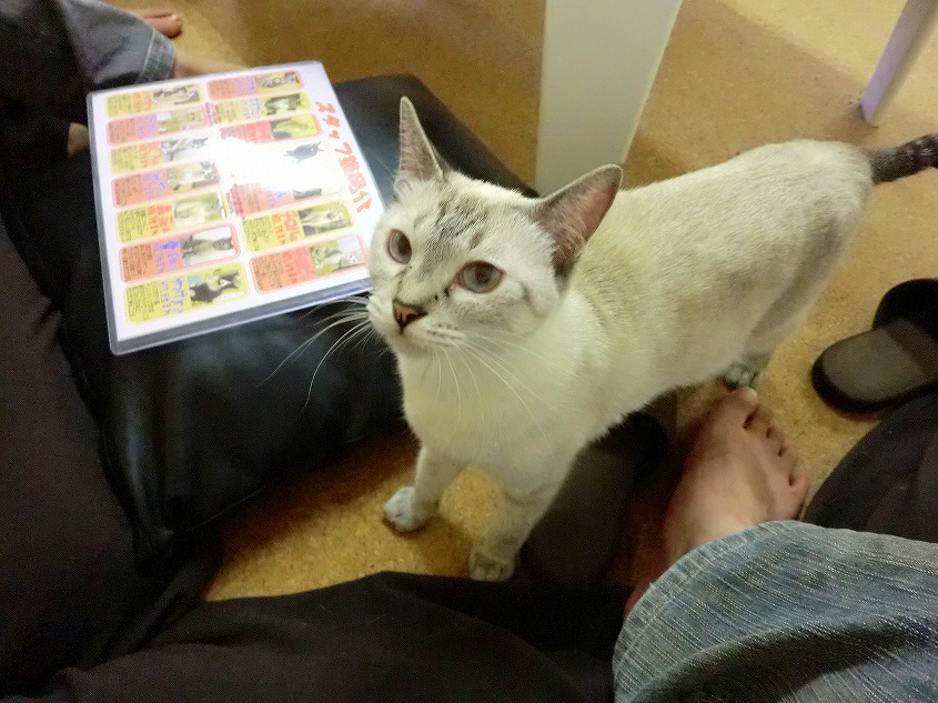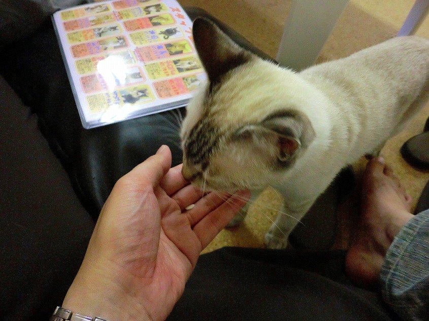 こちらのお店の猫たちは抱き上げ禁止ですけど、猫たちが営業上手で結構膝の上に乗ったり