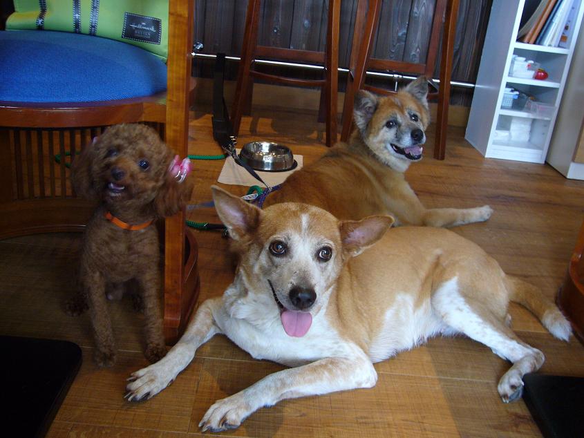 久しぶりのドッグカフェ訪問で家のわんこ達もくつろぎモード全開のようでした。