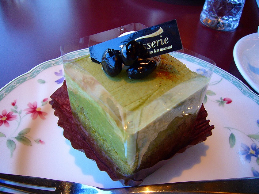 ケーキは抹茶です。紫芋のタルトを食べたかったんですけどもう無くなってしまっていました。