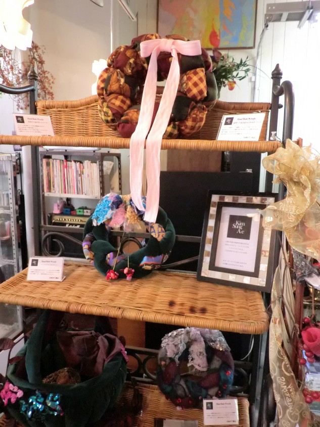 ケーキのケースの横には手芸品が展示してありました。