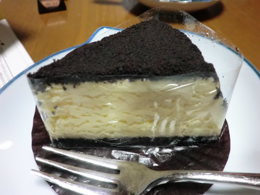 家に買って一番スタンダードな黒いチーズケーキを食べてみました。