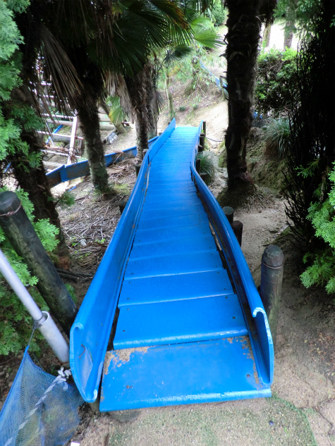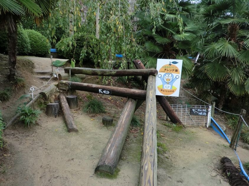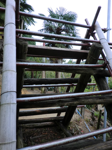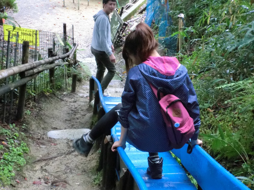 まず最初は丸太の橋ですが、これ結構滑ります。