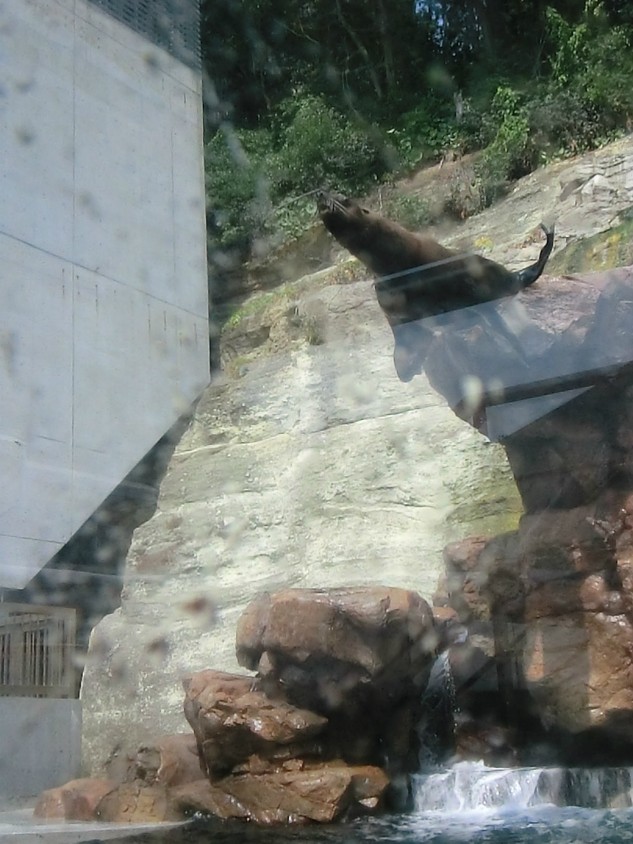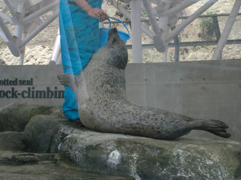 そして横のプールではアザラシのロッククライミングです。