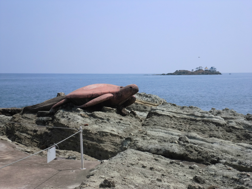 巨大な亀の置物がありました。なんとなく記念撮影ポイントです。