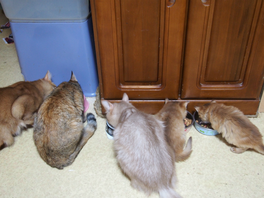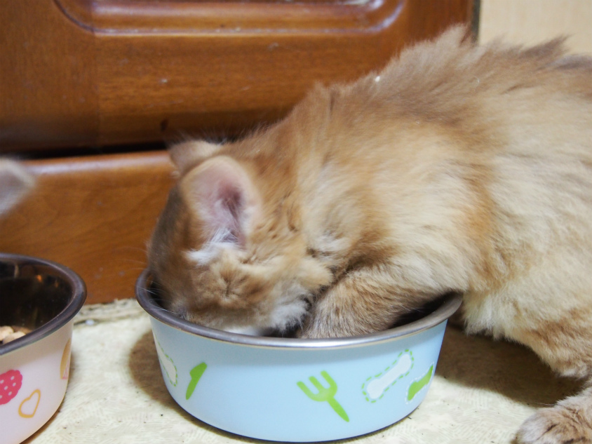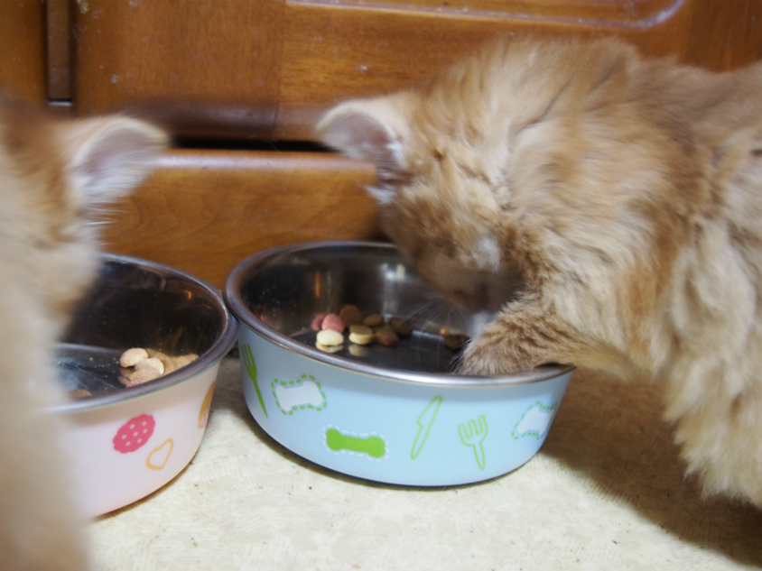 もうすごい食欲です。最近はカリカリを入れる音で餌場に走ってくるようになりましたよ。