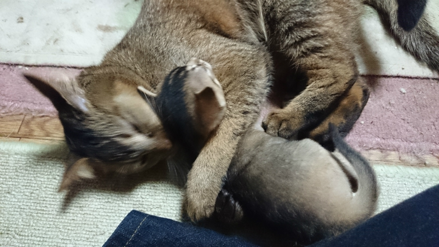割りと強めに蹴られているような気もしますが、子猫たちは何も言いませんからやっぱり加減しているんでしょう。