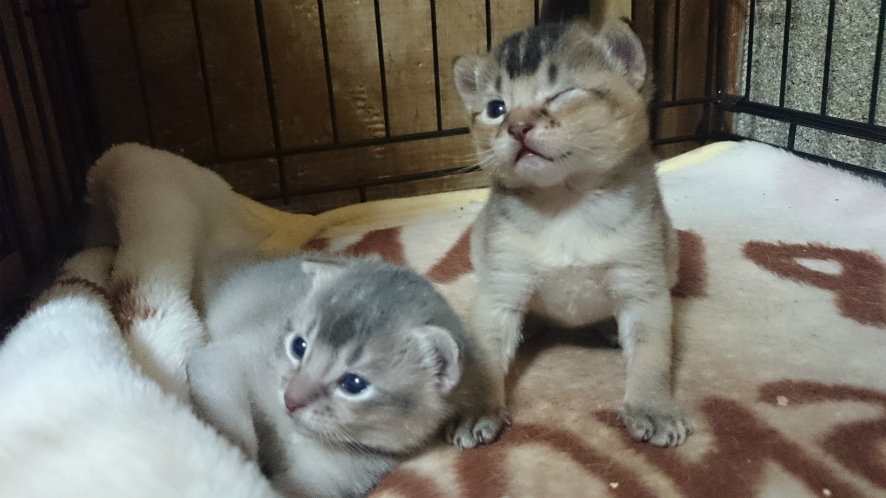もう一匹いる仔猫もなんとなく後ろ足が曲がってるような怪しい雰囲気です。