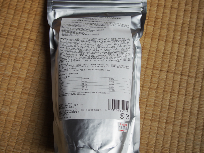 色々種類がありましたが今回はナウフレッシュ グレインフリー アダルトキャット 454gと言う銘柄を注文。