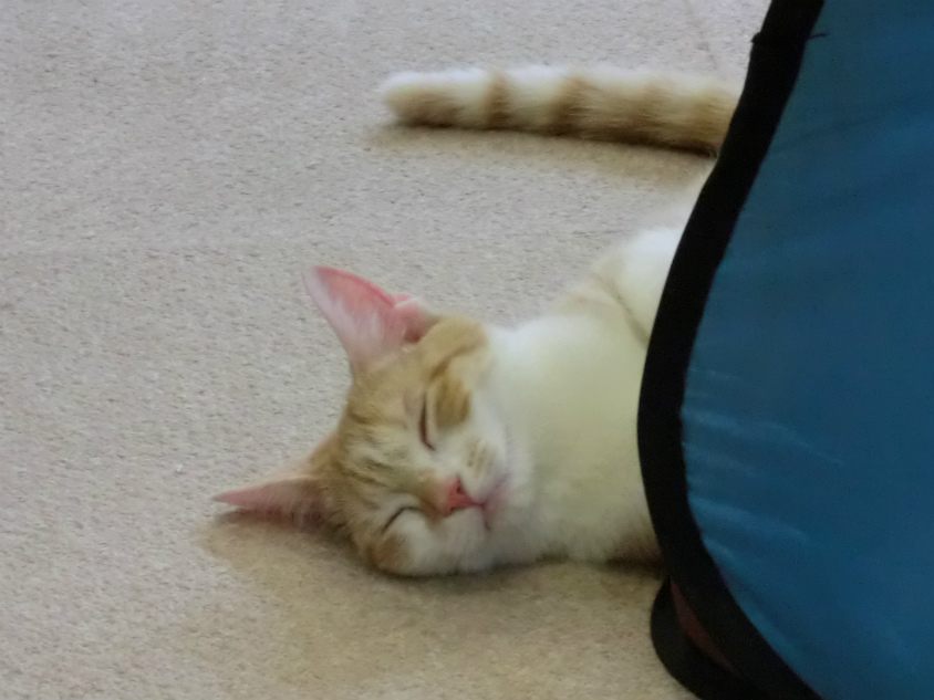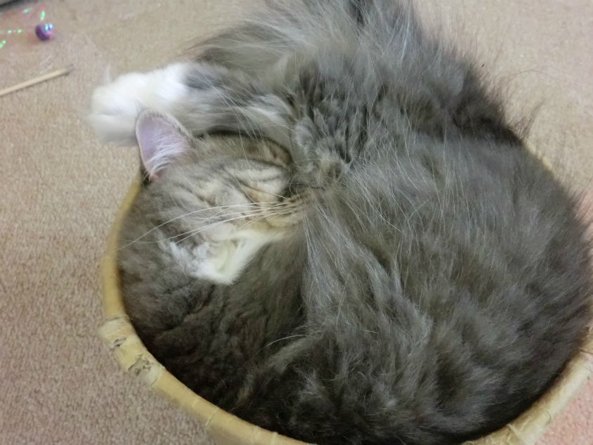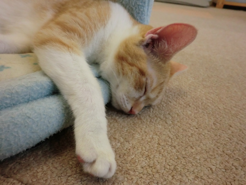 寝るのが早いです。そこは人間も猫の子供も一緒ですね。