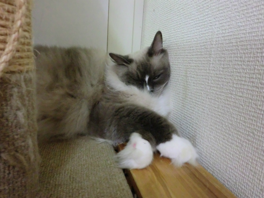 近くにいた子猫の肉球を触って遊んでいたら、遊んでる最中に寝てしまいました。