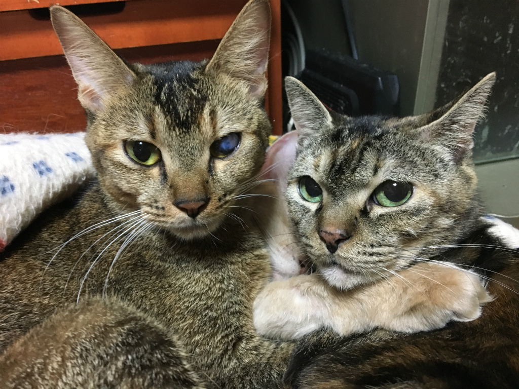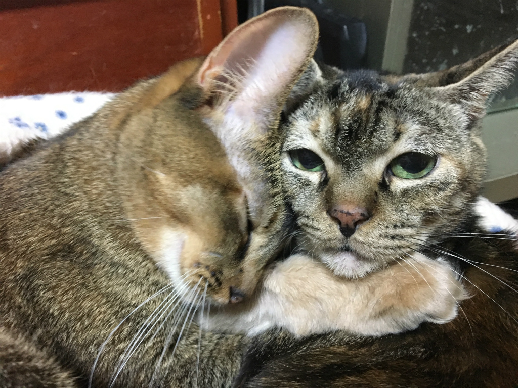 バシバシ写真撮ってたらハッピーがこっちを向きました。桜にめっちゃ甘えられながらちょっと寝ぼけた感じの目でこっちを見てます。