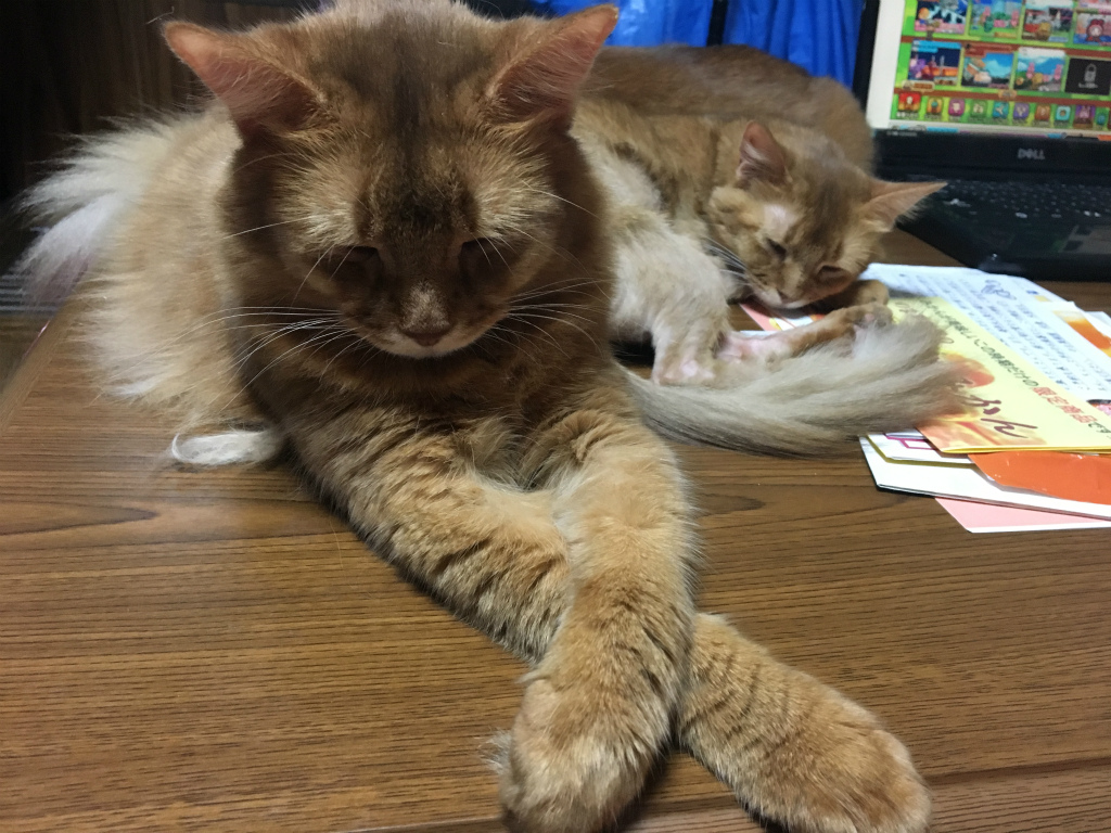ちなみにテーブルの上ではピノが寝てたんですけど、こっちはなんか前脚をクロスさせてウィッシュみたいなポーズして寝てました。