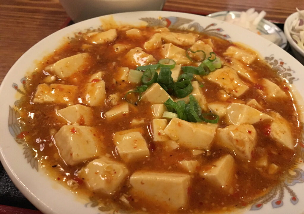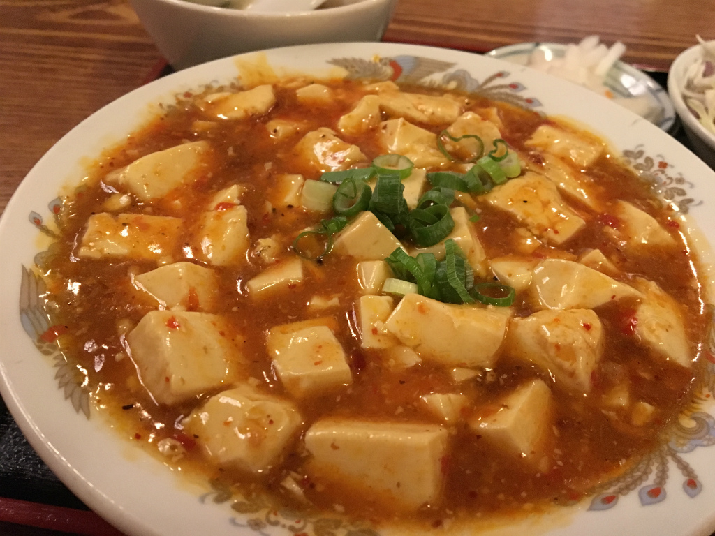 麻婆豆腐は茶色っぽいタイプじゃなくて赤っぽいタイプの見るからに割りと辛そうな色してます。