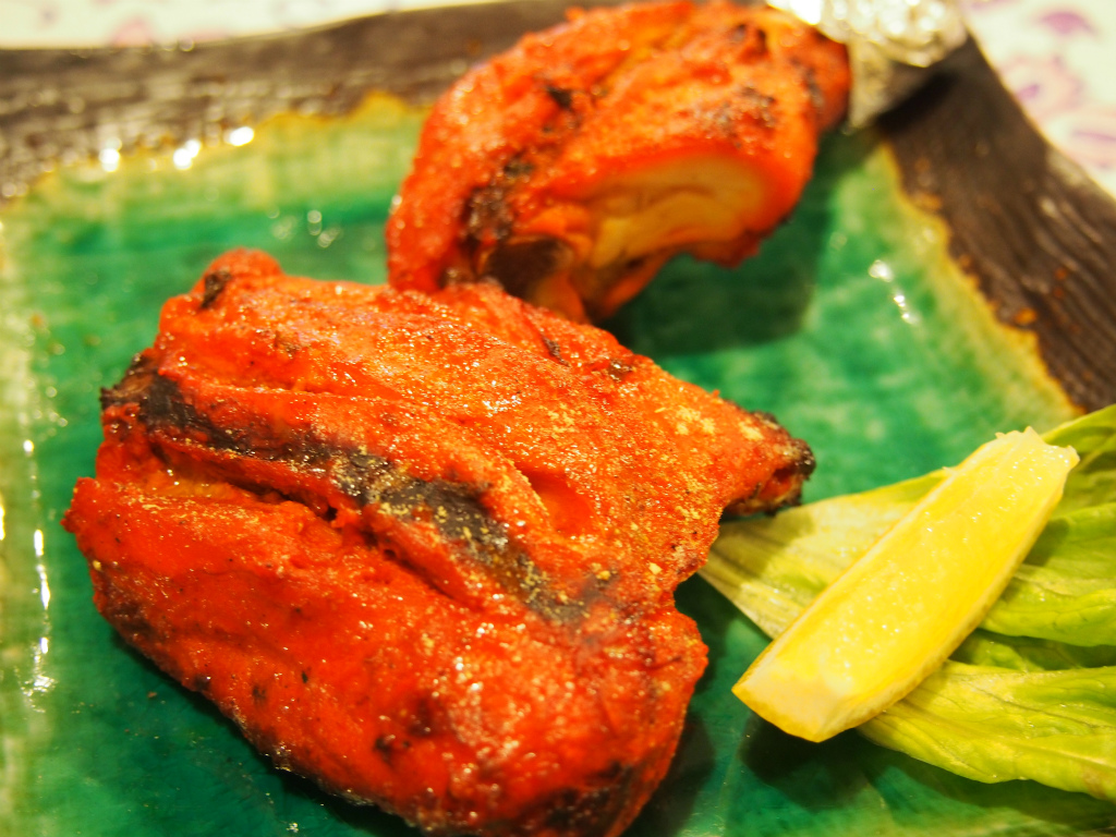 最初に出てきたのはタンドリーチキンです。赤いですね~、タンドリーしてますね~w