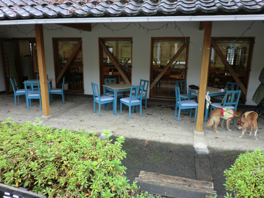 入口左にはテラス席があり、ドッグカフェになってるようです。