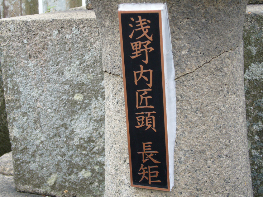大石内蔵助のお墓と浅野長矩のお墓が中心の大きくあり、それを囲むように小さなお墓が沢山あります。