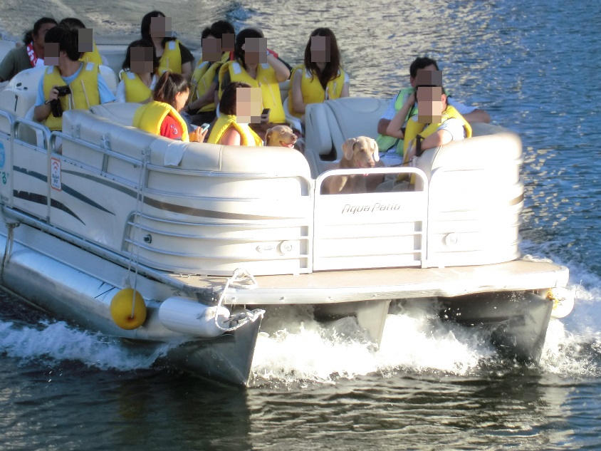 クルーズでは割りといろんな橋をくぐりますが中には結構高さが低くて頭を下げないと通れないような場所もあります。こういった場所では大型犬のワンコなどはちゃんと飼い主さんが頭を下げてあげないと危ないので気をつけてくださいね。