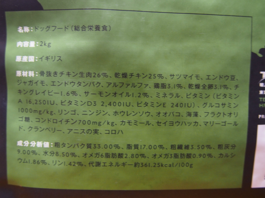 書いてあるのは犬の食事に適してないらしい。犬って極めて雑食に近い肉食の動物らしく