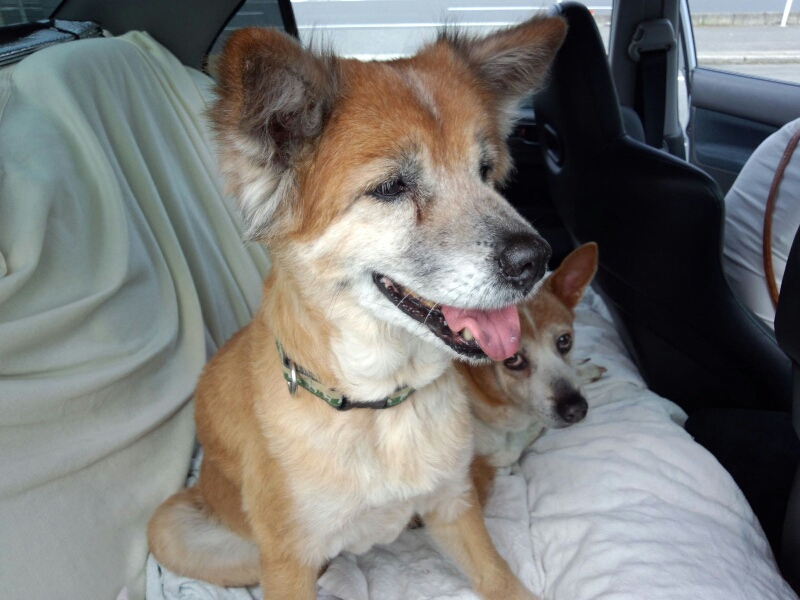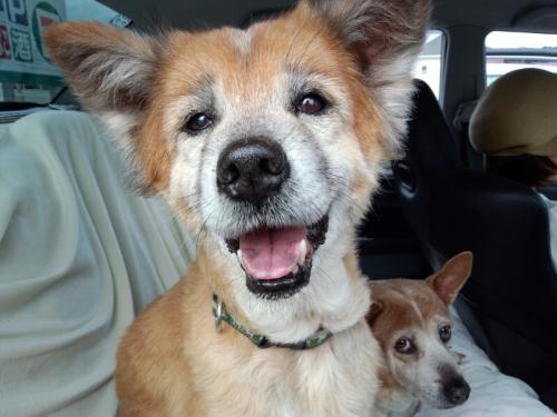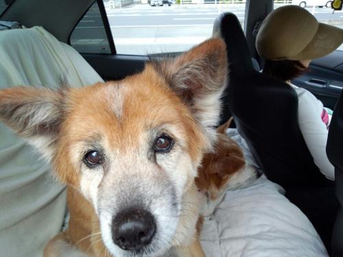 出かけた先での車内でのランの顔が笑顔です。