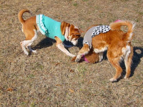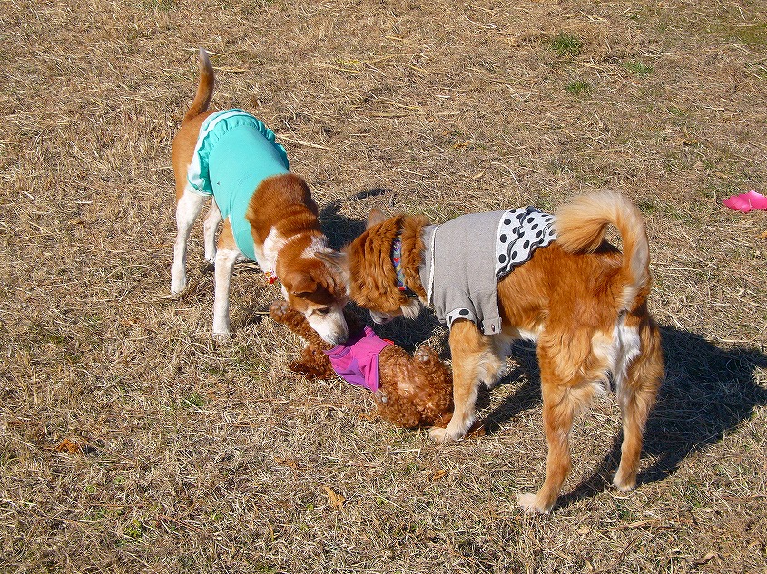 今日は久しぶりに犬全員出動です。例によってマオが遊ばれます。