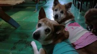 看板犬のマックとマウイが最初は吠えてましたが、撫でてあげると