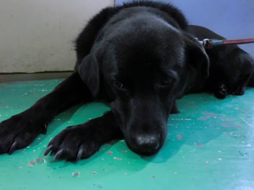 看板犬のマックとマウイが最初は吠えてましたが、撫でてあげると