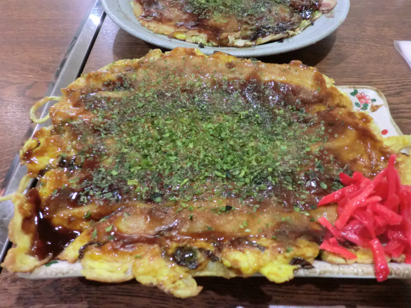 こちらのお店はお好み焼きはカウンターの中で作ってから持ってきてくれます。