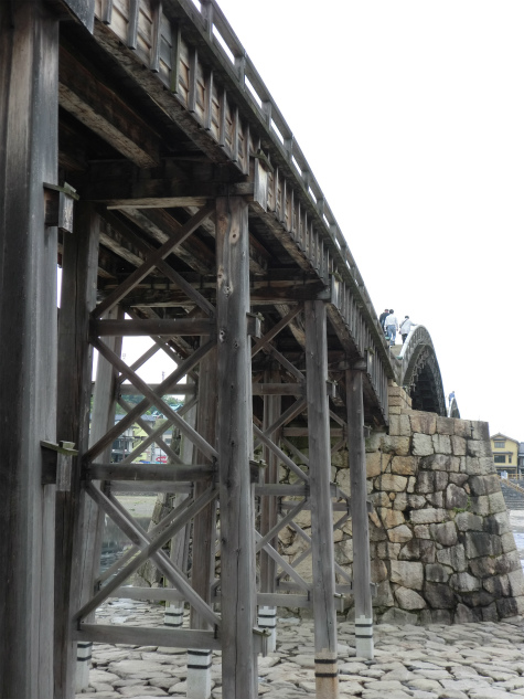 錦帯橋は橋脚が石垣で作られていて道部分は木造になっています。この感じがなんとも言えず好きです(笑)