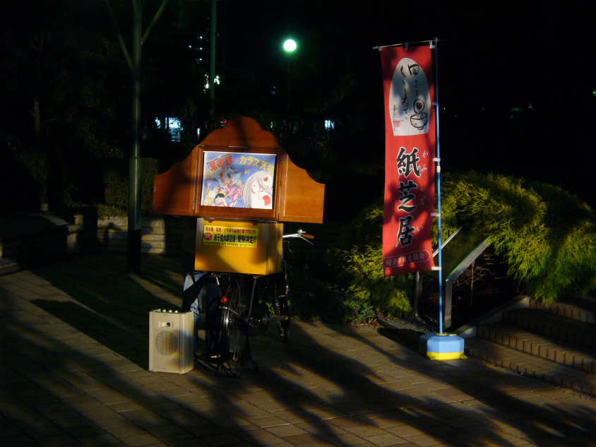 広場では時間が合えば紙芝居を聞くことができます。今となっては珍しい自転車の紙芝居ですね。都会に住んでるとなかなかこんなものに出会う機会はないですから時間に余裕があるなら聞いていくことをオススメします。