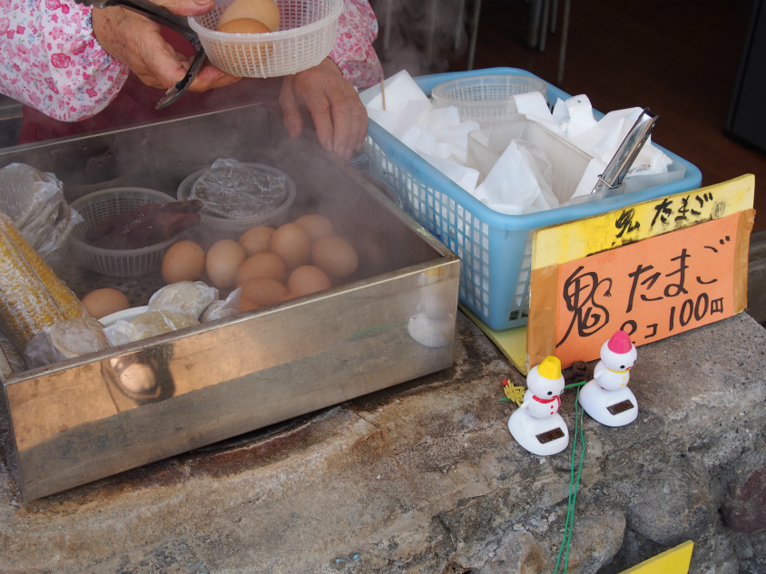 温泉といえばやっぱり温泉たまごですが、地獄巡りの場合は温泉に浸けて茹でたものと噴気で蒸したものの2種類があります。