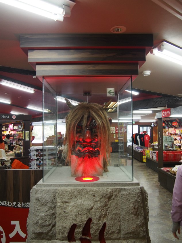 地獄に行くために売店を通る作りになってて中に鬼の面が飾ってありました。
