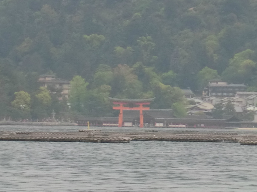 廿日市市に来ました。はるか彼方に見える厳島神社の鳥居です。