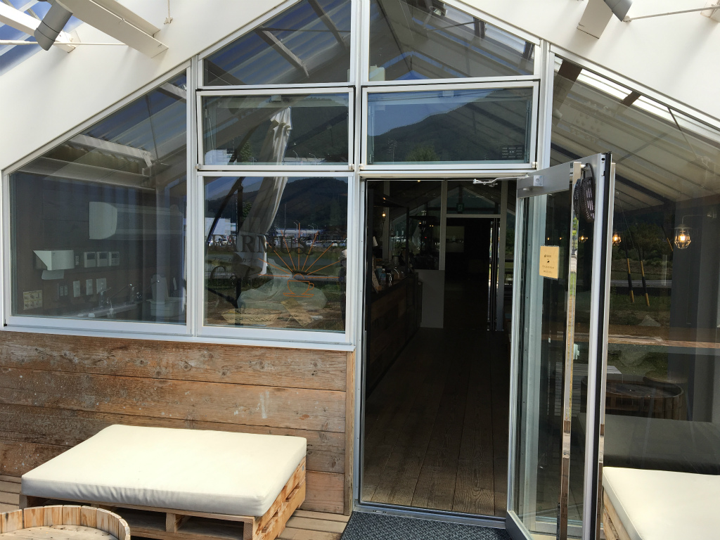 ちなみに建物の内部からだけじゃなくて、駐車場側から直接入れる入口もあります。ここから太陽光が入ってきててめっちゃ明るかったです。