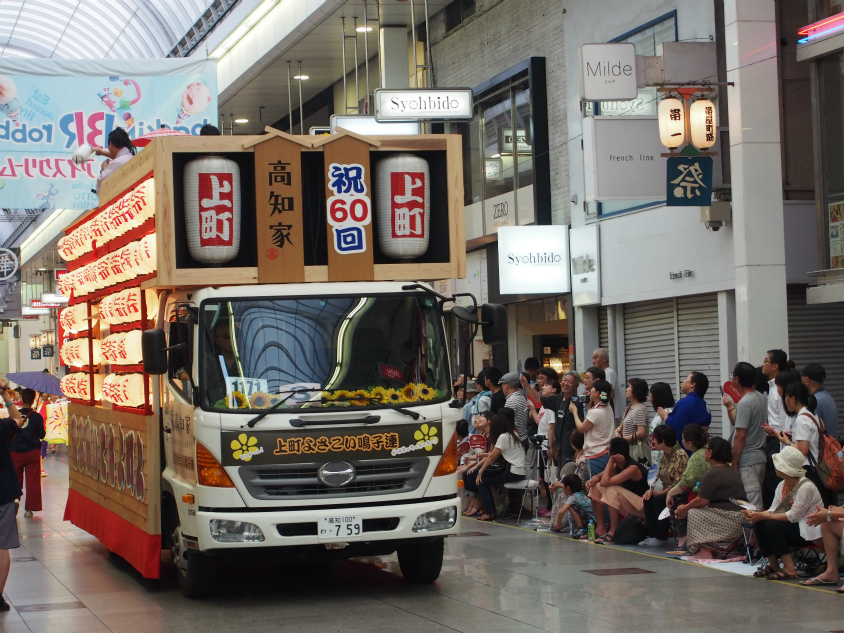 僕が見たのは前夜祭のよさこい祭り60周年の記念パレード。パレードに出ているチームは20チームです。