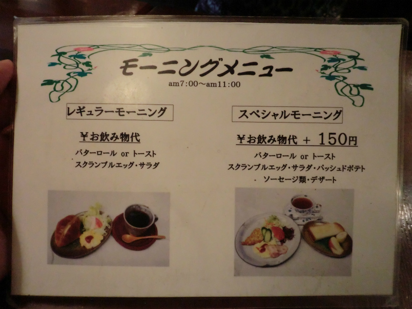 時間帯がまだ朝だったのでメニューはモーニングです。