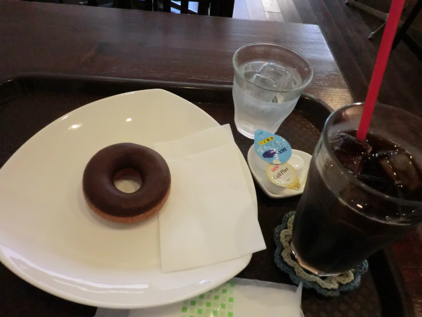今回はチョコドーナツとアイスコーヒーを注文しました。