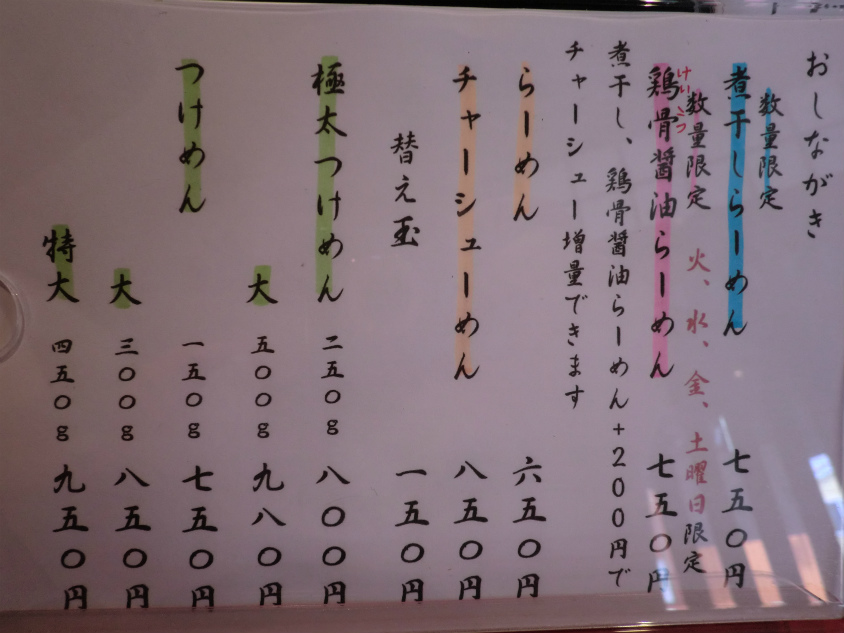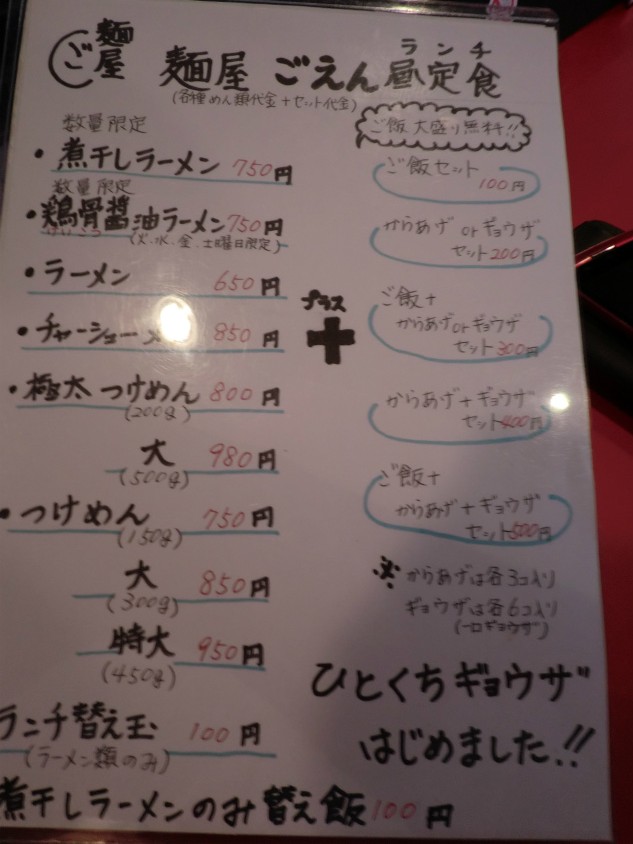 今回はこの中から、極太つけ麺(200g)+から揚げのランチにしました。