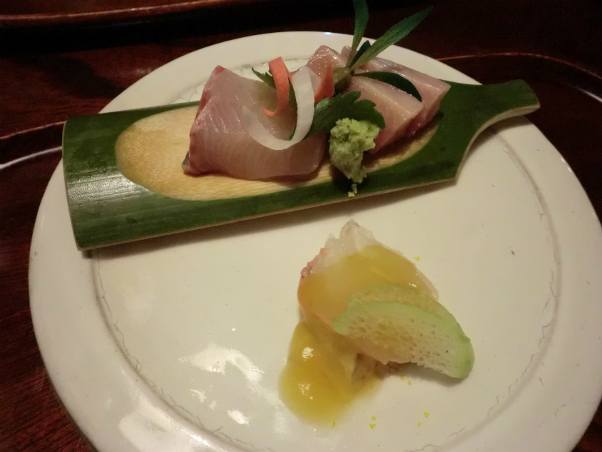 続いてはお刺身。手前のヒラメはカツオベースのタレがかかっていてこれが旨いです。