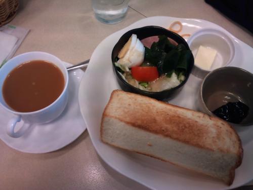 このお店のトーストはパンが分厚いので、1枚の半分のサイズで出てきます。