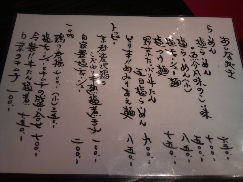 なんとなく塩ラーメンの店って黒基調のところが多い気がします。