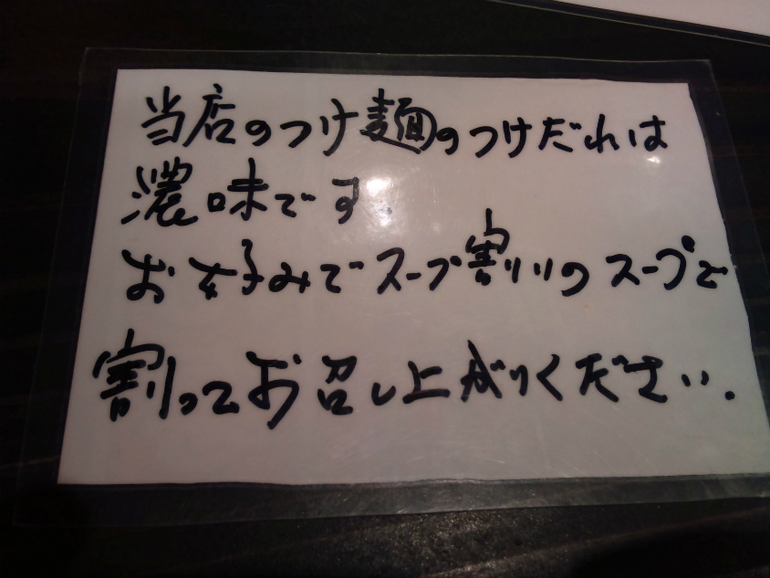 そしてつけ麺に関する注意書きもあります。つけだれが濃いらしいです。