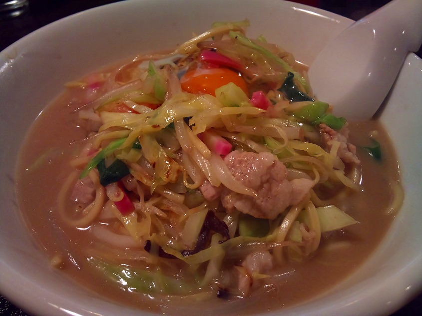 ちゃんぽんに生玉子が乗っかってるのは初めて見ました。