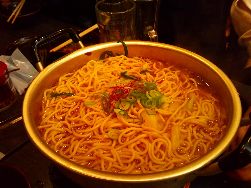 そしてモツ鍋のシメはボク的には麺です。これ美味しいですよ~